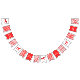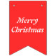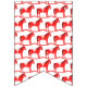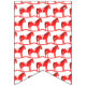 Ce magnifique bunting de Noël présente une image art numérique d'un mignon cheval à bascule de style scandinave. Le cheval est rouge avec une crinière rouge foncé, la queue et les sabots. Le cheval sympathique sourit. Il a une selle blanche et des rois avec de jolis motifs de style Scandi rouge sur la selle, y compris le soleil, la lune et les étoiles, les coeurs et les fleurs. La base du cheval rocking est rouge et est couverte de feuilles blancs. Le design a été inspiré par le cheval suédois Dala. Il y a du texte personnalisé pour que vous puissiez inclure un message.