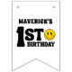 Bring the happiness and smiles to your little guy’s big day with our One Happy Dude 1st Birthday Bunting Banner! This cheerful, yellow and black happy face, retro-inspired banner is the perfect statement piece for your party wall, dessert table, or photo backdrop. This bunting banner is a part of a birthday party collection with coordinating items available.