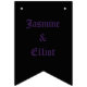 Ce magnifique bunting présente une paire de Ravens noirs gothiques perchés sur un coeur noir se regardant l'un l'autre avec amour. Ce design est parfait pour les mariages, les anniversaires et la Saint-Valentin. C'est aussi génial pour montrer à cette goth spéciale dans votre vie combien vous les aimez. Il y a du texte personnalisé pour que vous puissiez inclure le nom des jeunes mariés.