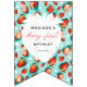 Vous cherchez un décor de premier anniversaire de baies ? Regardez nos drapeaux Retro Floral Berry First Happy Birthday Photo Bunting Flags! Il dispose d'un arrière - plan bleu-turquoise orné de fraises vibrantes et de fleurs blanches, créant une ambiance rétro amusante pour votre célébration. Parfait pour une fête de 1er anniversaire à thème fraise, donnant le ton pour une journée joyeuse et colorée. Belles décorations d'anniversaire à thème fraise! Vous pouvez ajouter une image.