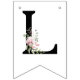 Banderole de fête moderne avec des lettres noires grasses dans une police élégante classique orthographiant « FÉLICITATIONS ». Le design est placé sur un fond blanc et rose pâle qui ajoute une atmosphère romantique de célébration estivale. Propre, audacieux et élégant, cette banderole de fête est idéale pour les fêtes de fin d'études, les anniversaires, les réalisations et toutes sortes de célébrations de milestones. Chaque lettre est ornée de feuilles vertes et de roses roses ajoutées.