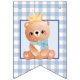 Bannière À Fanions Teddy Bear Blue En vichy Joyeux anniversaire