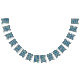 Le motif que vous avez fourni présente un motif géométrique répétitif. Il se compose de formes de losanges et de gouttes arrangées de manière tessellée. Les couleurs principales utilisées sont le bleu, le vert et le blanc. Chaque forme de losange est délimitée par du bleu, enfermant un losange vert plus petit, qui à son tour enferme une forme de goutte blanche. Le design global crée un sentiment de profondeur et de complexité. Il pourrait servir d'inspiration pour des motifs ou des éléments décoratifs.