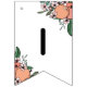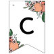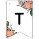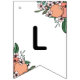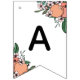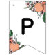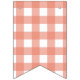 Drapeaux mignons pour un baby shower à thème pêche avec A LITTLE PEACH écrit sur des drapeaux imprimés avec des illustrations de pêches, de fleur de pêche et de verdure. Séparation des mots : un motif en vichy couleur pêche.