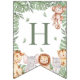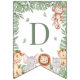 Decorate your Wild One celebration with this adorable jungle-themed birthday banner! Each flag features watercolor safari animals — giraffe, lion, elephant, tiger, and monkey — surrounded by tropical greenery and soft neutral tones. Perfect for a jungle, safari, or Wild One first birthday theme. Coordinates beautifully with matching invitations, thank you cards, and party decor.