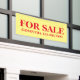 Grande bannière extérieure "À vendre" personnalisable avec vos coordonnées. Dans un joli design rouge et jaune. Convient pour la vente de propriété faire-part.