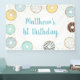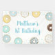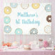 Cette adorable bannière d'anniversaire présente nos beignets dessinés à la main dans des couleurs pastel avec des confettis saupoudrés.