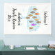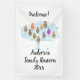 Les branches de l'arbre abritent une famille de chouettes. Chaque oiseau est de couleur différente. Au-dessus de l'arbre se trouve le salut "Welcome" et au-dessous se trouvent les détails de l'événement. Personnalisez avec votre salutation, votre nom de famille et d'événement ainsi qu'une date, si nécessaire.