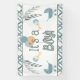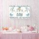 Bannière de baby shower Buggy Boy pour ajouter à votre décor de fête avec "It's A Boy !" aux couleurs de sauge, gris clair et bleu aqua. Décoré de 2 chariots pour bébés, de rotin, d'un bouquet de ballons et de branches avec des feuilles alternant couleurs gris clair et sauge. Bordures de rayures croisées en haut et en bas de la bannière. Un complément parfait à un baby shower en tant que point focal qui va vraiment cravate le thème ensemble.
