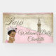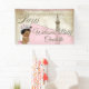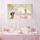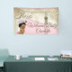 Banderole de baby shower parisienne avec adorable petite fille afro-américaine d'origine portant une jolie couronne et un chapelet de perles sur un beau arrière - plan parisien rose vintage. Cette jolie bannière de baby shower parisien est facilement customisée pour votre événement en ajoutant simplement le texte de votre choix.