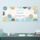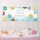 Bannière "Bienvenue" pour 1er anniversaire, présente une belle aquarelle illustration d'un beignet sucré et délicieux.