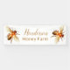 Marquez votre nom commercial de miel avec cette grande bannière de 2 mètres de long, avec des illustrations brun doré d'abeilles miel. Personnalisez le texte pour votre entreprise de conservation des abeilles. Idéal pour une utilisation devant votre magasin, le marché fermier et les salons.