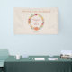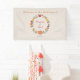 Ajoutez une bannière de bienvenue aux couleurs de l'automne avec une couronne et ses feuilles d'érable, de hêtre, de chêne et de noisette, de champignon, de glacier, de citrouille, de châtaignes et de noix, les noms de la mariée et du marié et la date. Parfait pour une réception de mariage sur le thème de la nature et de la forêt ! Changez juste le texte pour une Fête des mariées !