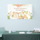 Créez une atmosphère magique pour un premier anniversaire avec cette bannière de fête aux animaux de la forêt. Ornée d'un doux hibou, d'un cerf et d'un renard portant des couronnes florales et une verdure aquarelle douce, elle est parfaite pour la célébration du 1er anniversaire d'une fille. Avec la phrase ludique, cette bannière personnalisable ajoute une touche charmante à votre décoration de fête sur le thème de la forêt.