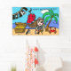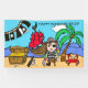 Banderole d'anniversaire personnalisée à thème Pirate. Ajoutez simplement le nom de votre fils à cet anniversaire dans la zone personnalisée. Pirate tiré à la main, bateau, drapeaux, crabe, coffre au trésor et toutes sortes de dessins humoristiques amusants sur le thème du pirate !