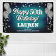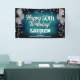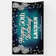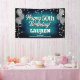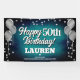 Banderole amusante pour l'intérieur ou l'extérieur, avec des ballons métalliques argentés festifs des deux côtés du design avec des confettis métalliques brillants et argentés sur un riche arrière - plan bleu aqua texturé pour votre bannière d'anniversaire personnalisée. Ce produit sert aussi de merveilleux gardiens d'anniversaire.