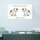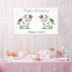 Une bannière d'anniversaire personnalisable avec deux vaches mignonnes en style dessin animé. Vous pouvez changer le message et l'utiliser pour une fête de réveil, une fête agricole, une retraite ou un pique-nique de campagne!