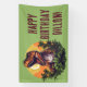 Dinosaure enfant amusant thème fête d'anniversaire avec la bannière T-Rex avec coucher de soleil et plantes tropicaux sur arrière - plan vert. N'oubliez pas de vérifier les fournitures de fête de dinosaures correspondantes!