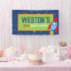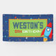 Bannière d'anniversaire en vinyle de fusée bleue et rouge dans l'espace.