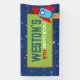 Bannière d'anniversaire en vinyle de fusée rouge et bleue dans l'espace extra-atmosphérique.