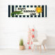 Bandeau d'anniversaire avec alligator et soleil jaune sur un arrière - plan nautique rayé bleu et blanc. Personnalisez votre texte à l'aide des espaces fournis. Si vous souhaitez un contrôle plus créatif, utilisez le bouton "Customiser" pour changer la police, la taille et la couleur. Personnalisez-le à votre gout .