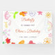 Célébrez dans le style avec cette bannière d'anniversaire enfant violet et jaune. Brillante et ludique, c'est la décoration parfaite pour mettre en valeur le jour spécial de votre enfant. Personnalisez avec leur nom ou âge pour créer un souvenir de fête unique. Un fond amusant pour les photos et une touche festive pour n'importe quelle fête d'enfants !