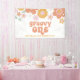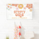 Bannière de fête rétro Super d'un 1er anniversaire avec floral boho.