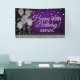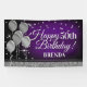 Banderole amusante pour l'intérieur ou l'extérieur, avec quelques ballons métalliques glam et confetti de gloire sur un riche texturé arrière - plan violet profond pour votre bannière d'anniversaire personnalisée.