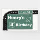 La bannière arrière-plan de la fête des signes de sortie Interstate est parfaite pour afficher derrière la table de gâteau/nourriture ou pour aider à décorer un mur à la cravate dans votre autoroute ou le thème de la fête d'anniversaire de conduite. Personnalisez avec le nom et l'âge de votre enfant.