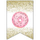Donut Gold arrose joyeusement bannière d'anniversaire avec l'aquarelle illustrant une beigne rose avec des arrosées d'or. Partie d'une collection. Éléments correspondants disponibles.