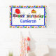 Banderole personnalisée couleur rouge, bleu, jaune, vert, orange gâteau d'anniversaire et ballon bannière neutre genre.