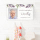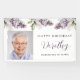 Des lilas mauve d'aquarelle douce créent une jolie bannière d'anniversaire personnalisée du 60e printemps. La photo de l'invité d'honneur est à gauche. Joyeux anniversaire, leur nom et célébrations de 80 ans est à droite. Tout le texte peut être customisé.