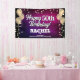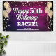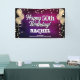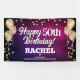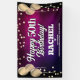 Banderole amusante pour l'intérieur ou l'extérieur, avec des ballons métalliques dorés festifs des deux côtés du design avec des confettis métalliques or brillant sur un riche arrière - plan texturé rose chaud & violet pour votre bannière d'anniversaire personnalisée. Ce produit sert aussi de merveilleux gardiens d'anniversaire.