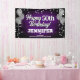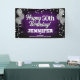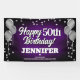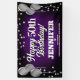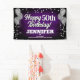 Banderole amusante pour l'intérieur ou l'extérieur, avec des ballons métalliques argentés festifs des deux côtés du design avec des confettis métalliques brillants et argentés sur un riche arrière - plan de couleur violet texturé pour votre bannière d'anniversaire personnalisée. Ce produit sert aussi de merveilleux gardiens d'anniversaire.