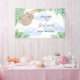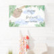 Cette jolie bannière en baby shower est décorée d'une aquarelle d'un doux parfum de bébé suspendu à une branche, encadrée de feuilles de jungle verte et de nuages bleus. Tout le texte est personnalisable. En créant notre oeuvre, vous ne trouverez pas cette image exacte d'autres créateurs. Aquarelle originale © Michele Davies.
