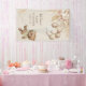 Bannière de baby shower d'ours de Bohême avec un arrière - plan brun clair, un bébé ours d'aquarelle vintage, ballons, boho rustique pampas herbe & florales, plus un modèle de texte moderne qui est facile à personnaliser.