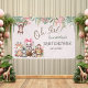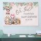 Célébrez l'arrivée de votre petite fille avec cette charmante banderole de baby shower sur le thème de la jungle rose ! Avec la phrase "Oh Girl!" en élégante écriture, ce design met en vedette un éléphant adorable portant un nœud rose en vedette. Elle est entourée d'animaux aquarelles adorables, notamment une girafe, un singe, un zèbre et un lion. La verdure tropicale et les fleurs rose saumon complètent le design, ajoutant une touche fantaisiste et élégante à votre décoration de fête.