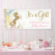 Bannière de baby shower Unicorne avec jolie parties scintillant or licorne et coeurs et tourbillons arc-en-ciel sur un choisir votre propre arrière - plan couleur. Vous pouvez facilement customiser cette bannière de baby shower de licorne pour votre événement en ajoutant simplement le texte de votre choix. Il s'agit d'un dessin imprimé sans véritable parties scintillant.