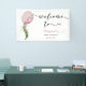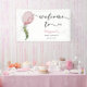 Banderole de bienvenue moderne et rustique baby shower à thème ballon avec aquarelle illustrant un ballon rose avec des feuilles d'eucalyptus verts.