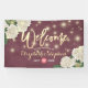 Mariage Welcome Banner Modèles - Elégant blanc belle aquarelle Hydrangea Fleurs et String Lights sur Arrière - plan rouge Bourgogne. Un Design Parfait Pour Votre Grand Jour ! Tous Les Style De Texte, Couleurs, Tailles Peuvent Être Modifiés En Fonction De Vos Besoins.
