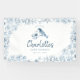 Définissez le ton d'une célébration élégante avec cette bannière de baby shower dusty blue. Avec des florales délicates de style chinoiserie et une illustration d'oiseau adorable, c'est le fond photographique ou la décoration de bienvenue parfaite pour un baby shower intemporel pour garçon.