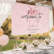 Bannière de bienvenue pour fête d'anniversaire chic rose avec un fond pastel doux, un texte en écriture élégante et un design de ruban stylé. Parfait pour la décoration d'anniversaire marquant, les thèmes de fête esthétiques pour filles, les arrière-plans de photo, les bannières de célébration et les décorations de fête d'anniversaire modernes. Ajoute une touche tendance et invitante à tout événement d'anniversaire.