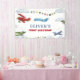 Mon Dieu, comment le temps vole ! ✈️ Prêt à célébrer un premier anniversaire d'avion pour votre petit aviateur? Bienvenue invités à votre fête d'anniversaire d'avion vintage coloré avec une bannière d'accueil personnalisable d'avion vintage de premier anniversaire d'anniversaire d'avion. Personnalisez facilement votre plan modifiable 1er anniversaire bannière de bienvenue. La bannière d'accueil d'anniversaire de l'avion PERCY vintage a un arrière - plan blanc avec ciel nuageux et avions vintages en rouge, bleu et vert, avec bannières d'avion et drapeaux vintages colorés volant le ciel. Fontes serif et sans serif manuscrites en noir, bleu et rouge avec texte modifiable complète cet avion 1er anniversaire fête bienvenue bannière de remise pour aviateur premier anniversaire do-it-yourself décorations.