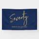Cette conception simple de bannière d'anniversaire présente une lettre dorée élégante "Soixante-dix" sur un fond bleu marine. Vous pouvez personnaliser le texte. Invitation d'anniversaire de 70 ans et fournitures de fête assorties disponibles dans ma boutique BaraBomDesign.