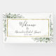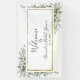 Une belle bannière de bienvenue avec feuillage doré et eucalyptus pour une fête prénuptiale. Facile à personnaliser avec vos informations. Idéal pour une fête sur le thème de la verdure ou du jardin.