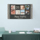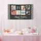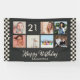 Créez votre propre bannière de collage de photos personnalisée pour une fête d'anniversaire 21 ans. Le modèle est configuré pour que vous puissiez ajouter votre nom personnalisé, votre âge et vos photos préférées. Vos photos apparaîtront automatiquement sous forme de collage. La bannière comporte une arche de style boho noir et un damier rétro moderne en rose et crème mignon. La bannière d'anniversaire est complète avec "Joyeux Anniversaire" et l'âge 21 écrit en typographie calligraphique script mignonne.