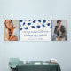 Banderole moderne de la fête de graduation conjointe avec un simple arrière - plan blanc qui peut être changé à n'importe quelle couleur, 2 photos des diplômés, chute des casquettes de mortier bleu, et un modèle de texte moderne qui est facile à personnaliser.