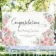 Inspiré par un jardin de roses en été, ce décor de fond de fête de remise de diplôme présente des roses blush douces qui créent un beau mélange de romance classique et de typographie moderne. Ajoutez ce panneau bannière à votre décoration de fête et félicitez le diplômé d'avoir atteint ce jalon. "Félicitations" dans un style manuscrit moderne.
