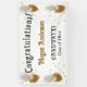 Une bannière de félicitations pour la remise de diplômes suspendue, conçue avec du texte de couleur or sur fond blanc avec des ballons et des étincelles or et blancs. Pour personnaliser, remplacez simplement le nom d'exemple par vos informations.