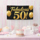 Célébrez vos 50 ans avec style grâce à cette bannière de fête « Fabulous à 50 ans » avec texte à paillettes dorées scintillantes, ballons dorés et confettis festifs sur un fond noir élégant. Parfait pour les fêtes d'anniversaire marquantes, les décors de photo ou la décoration d'événements élégants. Personnalisez-le pour votre célébration fabuleuse !